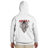 With bold red Japanese kanji and a hyper-detailed illustration of Eren and the Titan lineage, this hoodie isn’t just a flex — it’s a statement. Built for the streets, made for the diehard fan.
