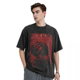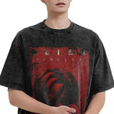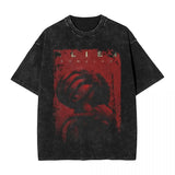 2024 New Alien Romulus Print Washed T Shirt Male Streetwear Casual T-Shirt Beach O Neck Leisure Tee Shirt Print Big Size Clothes