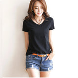 Fashion Women Spring Summer Cotton T-shirt Short Sleeve Female Tee Slim Solid Color T-Shirt Casual Breathable Tops