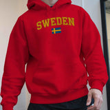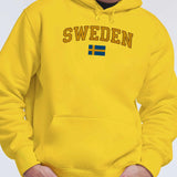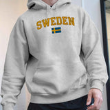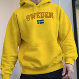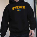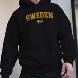 Men's Sweden Flag Graphic Hoodie - Black Velvet Fleece Sweatshirt with Yellow Lettering, Regular Fit Casual Winter Pullover