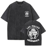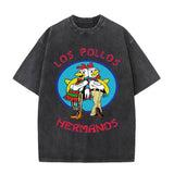 Summer men's and women's fashion water wash vintage retro Los Pollos Hermanos chicken pattern T-shirt casual loose top